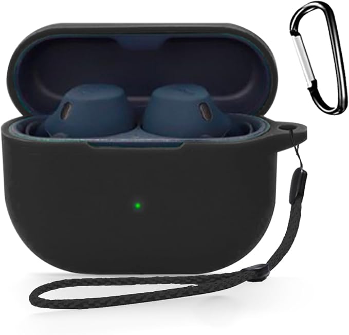 Jabra Elite 4 用 ケース 全面保護カバー シリコンケース 【HUKWIMO】 カラビナ付き 耐衝撃 防水 防塵 装着充電可能 全面保護 キズ防止 Jabra Elite 4 対応インイヤーヘッドホン用ヘッドホンケース [ブラック 黒]