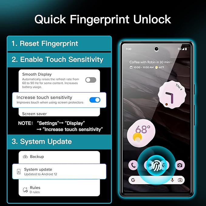 JETech Google Pixel 7a 6.1インチ用液晶保護強化ガラスフィルム 指紋ID対応 HDクリア 3枚セット