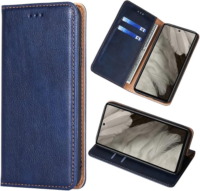Yiunssy google pixel 7a ケース 手帳型 pixel 7a 手帳型 ケース スタンド機能 カード収納 PUレザー 軽量 落下防止 衝撃吸収 全面保護 財布型 マグネット google pixel 7A 携帯カバー(ブルー)