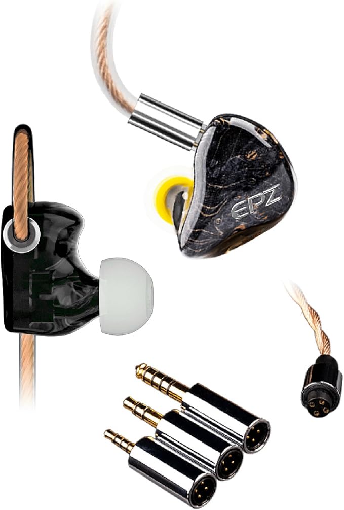 Hifi Kingdom 1DD+4BA EPZ K5 8mmムービングコイルLCP+PUダイヤプフラグム+4バランスドアーマチュアハイブリッドプロフェッショナルHiFiモニタリングイヤホン・イヤホンパネルメープルおよび3D医療用樹脂音響空洞(BLACK)