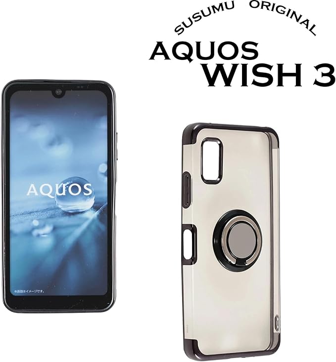 AQUOS wish3 ケース TPU リング AQUOSwish3 ソフトケース カバー クリアケース スマホケース 薄型 保護 耐衝撃 SH-53D SH53D A302SH A303SH SH-M25 docomo Y!mobile Softbank 楽天モバイル 国内正規メーカー 【su.su.mu】 s766aw3BL