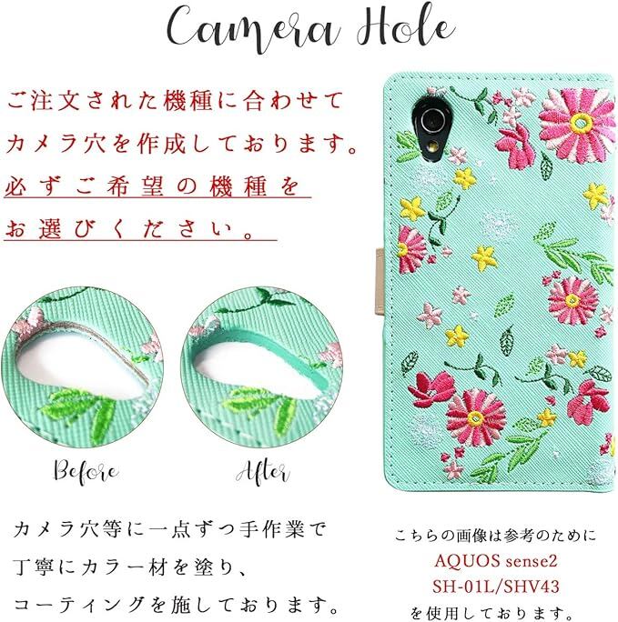 Galaxy S23 Ultra SC-52D SCG20 手帳型 ケース カバー SC-52Dケース SC-52Dカバー SC52Dケース SC52Dカバー SC52D SCG20ケース SCG20カバー ギャラクシー 手帳ケース 手帳型ケース スマホケース ちょいヌメ花刺繍 ミント