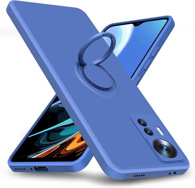 Xiaomi 12T Pro ケース TPU 耐衝撃 リング シリコンケース 薄型 ソフト 全面保護カバー 指紋防止 リング付き スタンド機能 車載ホルダー対応 360 回転 レンズ保護 ストラップホール付き スリム 軽量 黄変防止 防塵 シャオミ 12t pro 用カバー[青] KC6-204