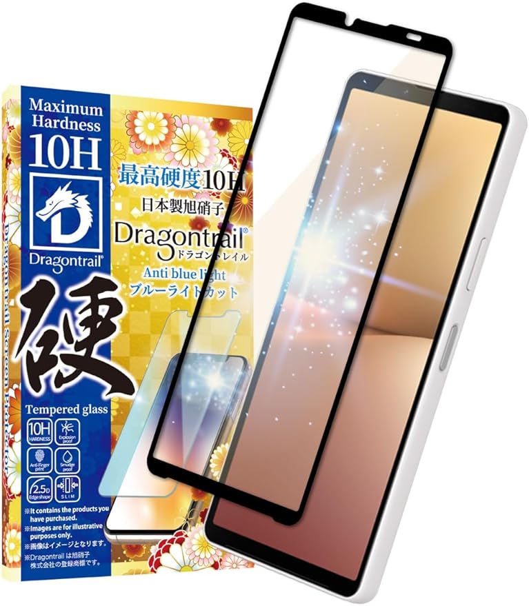 シズカウィル Xperia 10 v 用 ガラスフィルム 強化ガラス 保護フィルム エクスペリア10v 用 フィルム 10Hドラゴントレイル ブルーライトカット SO-52D 用 SOG11 用 液晶保護フィルム 黒縁 1枚入り