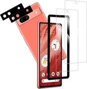 【対応機種】Google Pixel 7a ガラスフィルム2枚 + カメラフィルム2枚。【注意】この電話の画面の端は湾曲しているため、保護フィルムのサイズが丁度良い場合、しっかりと貼り付けられず、白いエッジやシェルとの干渉などの問題があるため、保護フィルムは画面よりも小さいです。