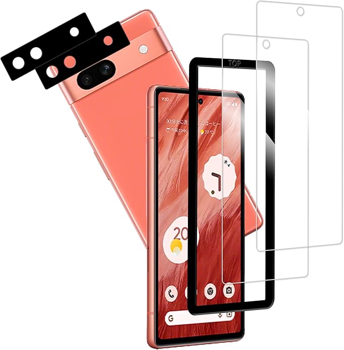 【2+2枚セット】ガイド枠付き KPNS 日本素材製 強化ガラス Google Pixel 7a 用 ガラスフィルム カメラフィルム カバー 保護フィルム