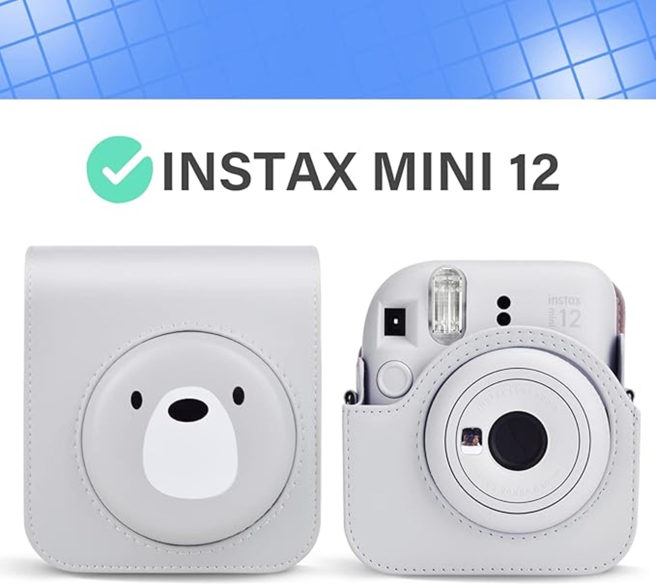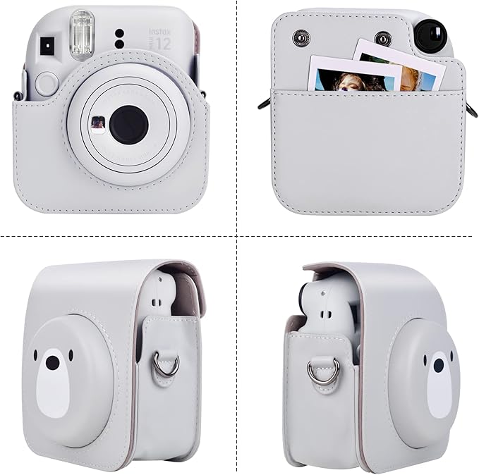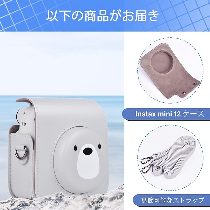Rieibi 可愛いinstax mini12 ケース、Fujifilm instax mini 12ケース チェキ12ケース instax mini12 収納バッグ PUレザー チェキ保護ケース ショルダーストラップ付き くまちゃん しろくま 携帯便利 軽量 おしゃれ