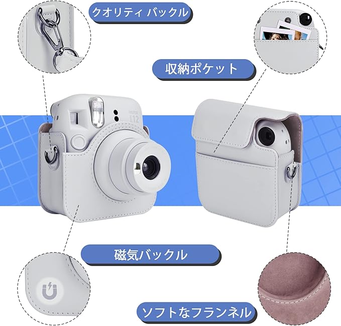 高質のPUレザー:mini12ケースはPUレザーとソフトなカメラフランネルを採用し、カメラをホコリ、傷や汚れから保護します。