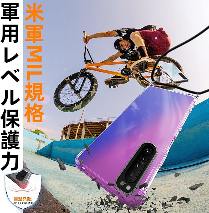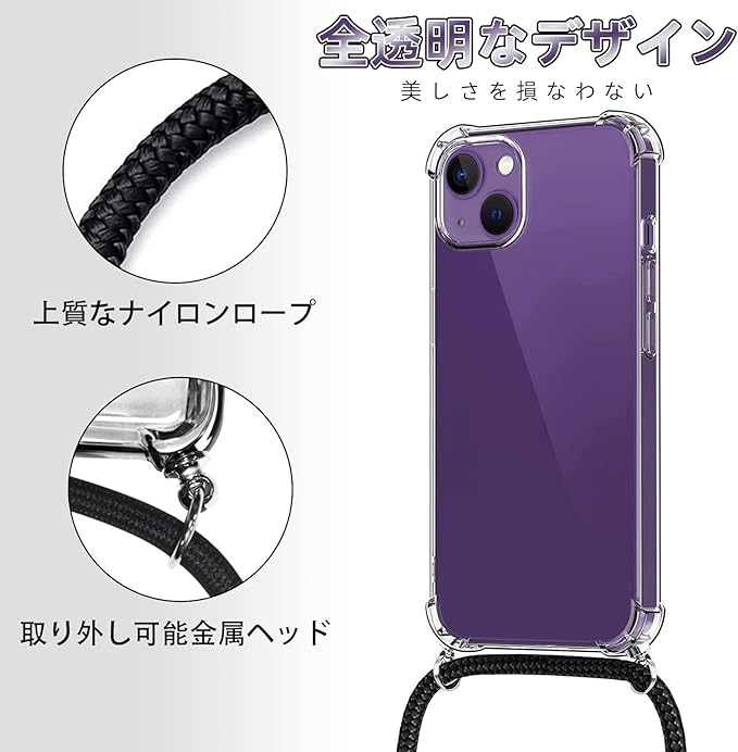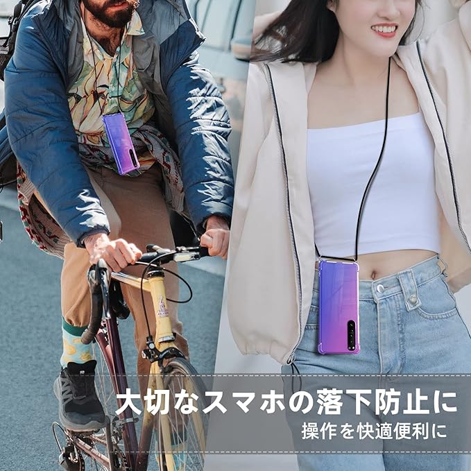 AQUOS sense7ケースSH-53C SHG10ケース クリア ショルダーストラップ TPU 透明 カバー 耐衝撃 軽量 薄型 スマホショルダー]スマホショルダー 肩掛け 紐付き 斜めがけ SH-53C SHG10 ケース 紫-ブルー 08007-SEN7-02