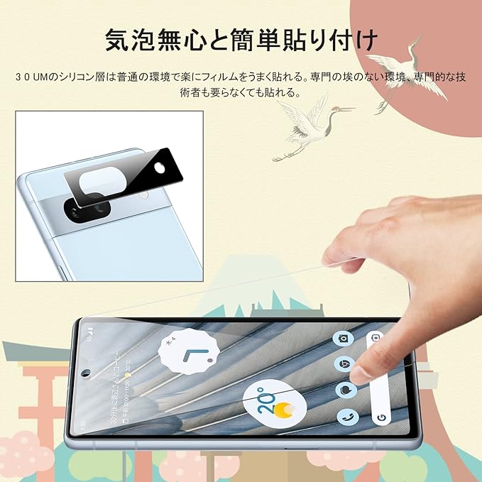 【対応機種】Google Pixel 7a専用設計。この機器は周辺部が曲面となったラウンド仕様のため、保護フィルムを端まで貼ることができません。そのため、表示部分よりも保護フィルムが小さくなっています。ご了承の上ご購入ください。
