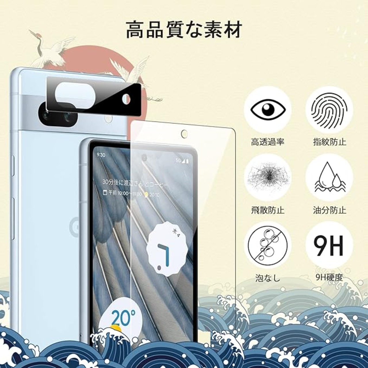 Google Pixel 7a フィルム 2枚 + カメラフィルム2枚【指紋認証対応】【ガイド枠付き】 ガラスフィルム 【旭硝子素材製】 保護フィルム 強化ガラス 気泡防止 ピクセル7a 対応 Besecou