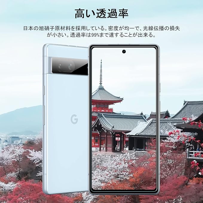 【高透過率】高品質の旭硝子を採用しており、光の透過率が99%で、透明度が普通のGoogle Pixel 7a ガラスよりも高くて、元々の画質が損なわれません。高画質な写真や動画を楽しむことができます。