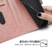 【素材】:軽量化デザインの薄型ケースです。マットの炭素繊維調のPUレザーを採用し、指紋防止の特徴を持って、汚れにくくて触感が優しい素材です。インナーケースは柔軟なTPUホルダーです、装着が簡単で本体を傷つける心配はありません。衝撃吸収機能も良くて、しっかりと端末を守り抜きます。