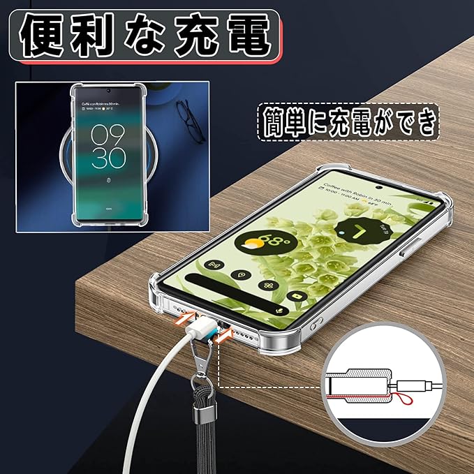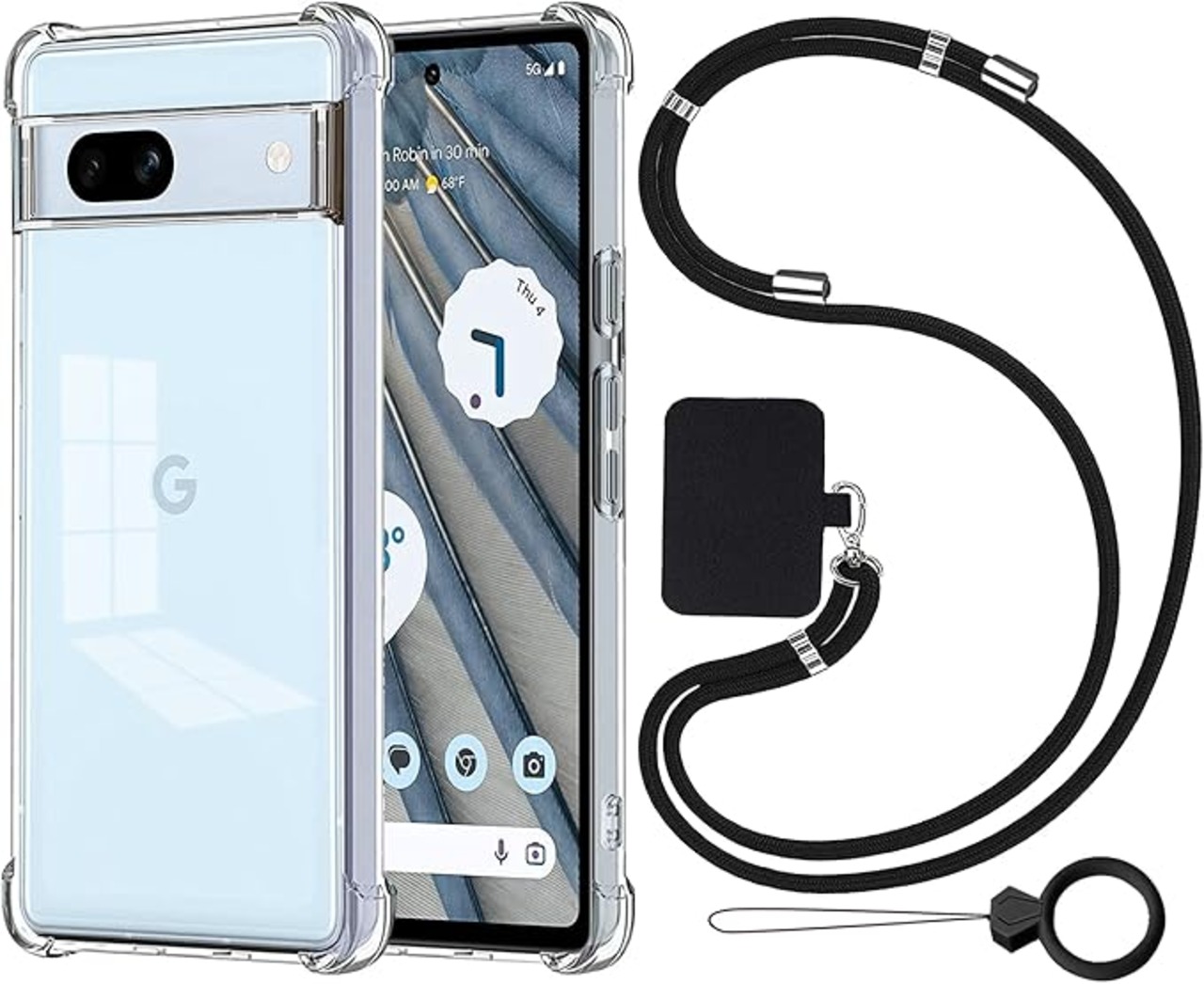 Ausrann Google Pixel 7a ケース Pixel7a ケース グーグル ピクセル7a カバー ショルダー [ストラップ2枚付き] 肩がけ 首掛け 紐付き ストラップホール付き 薄型 軽量 衝撃吸収 シリコン TPUバンパー + 黄変防止 透明 PC カバ− 米軍MIL規格 ワイヤレス充電対応 スマホケースPixel 7a (クリア)