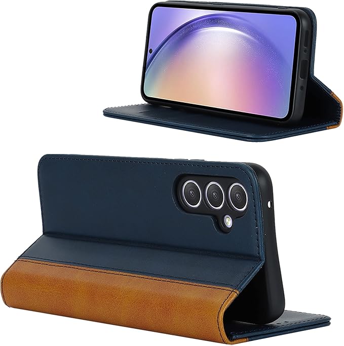 Galaxy A54 5G ケース サムスン galaxy a54 5g sc-53d docomo 手帳型 ギャラクシー a54 5g カバー galaxy a54 5g scg21 au 手帳ケース galaxy a54 5g case zouzt 合成皮革 財布型 カード収納 ベルトなし マグネット スタンド 4色 ブルー+イエロー