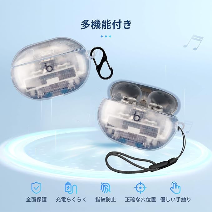 【しっかり保護 】衝撃を吸収できる高品質TPU素材を採用することで、触り心地が良いだけでなく、優れた保護力を発揮します。お使いのBeats Studio Buds+を落下による衝撃や擦り傷からしっかり保護します。また柔軟性も高く、汚れや指紋がつきにくいです。少し汚れがついてしまった場合でも、水洗いまたは濡れた布で拭き取ることできれいになります。