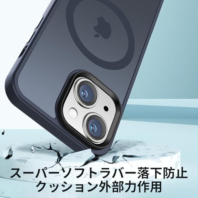 【米軍規格・MagSafe対応】Gtsoho iPhone 14 iPhone 13 ケース 半透明 マグネット搭載 ワイヤレス充電 耐衝撃 耐久性 全面保護 黄ばみなし ストラップホール付き イフォン13 / 14用 カバー ネイビー