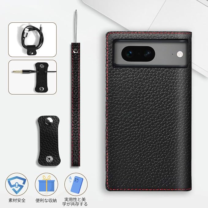 【対応機種】: GooGle Pixel 7a; ケース表面の色に合わせたイヤホン収納ベルトが付属しています。イヤホンを収納に便利です。愛機を全面保護のためにマグネットを内蔵してしっかりと閉めることができます。インナーTPUケースはクリアとブラックの2種類があります。ランダムに発送いたします。在庫状況によりお選びいただけませんが、機種専用ケースでお使いの機種にピッタリです。