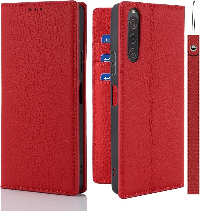 for Xperia 10 V ケース手帳型 SO-52D/ SOG11 ケース Pelanty 牛革製品 本革レザー Sony 10v 2023 財布型カバー Sony Xperia 10v カード収納 スタンド機能 内蔵マグネット 手作り柔らかい スマホケース ソニー エクスペリア 10 第5世代 携帯カバー ストラップ付 ヘッドフォンケーブル 耐衝撃 [6色選択] レッド