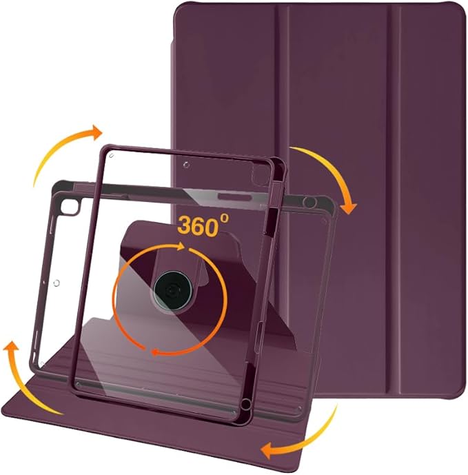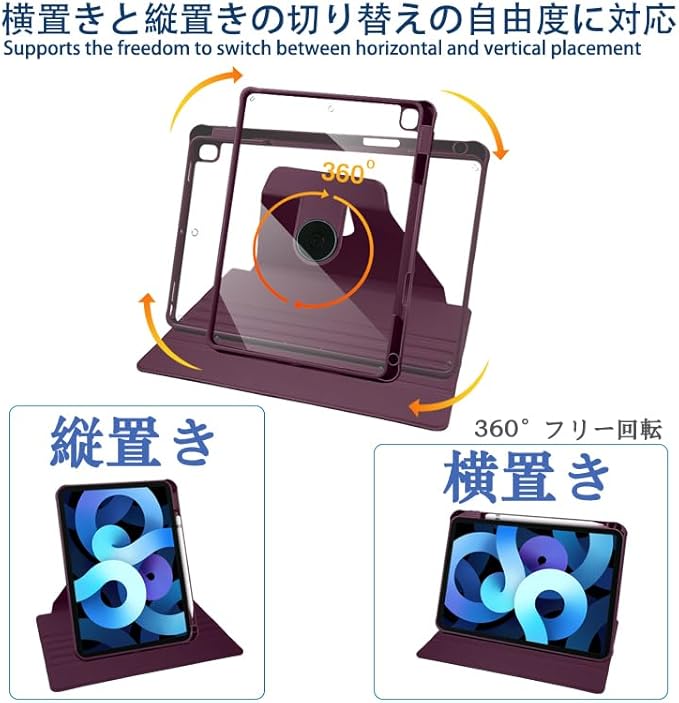 iPad 第9 / 8 / 7世代 ケース PUレザー 360度回転式 磁気吸着 iPad 第9 / 8 / 7世代 iPad Air 第3世代 ケース 透明カバー 2 in 1 スタンド 調節可能ハンドバンド ペン収納 子供 オンライン教育 車載 アウトドア 屋内 軽量 便利 Apple Pencil 収納 耐衝撃 カバー (ワインレッド)