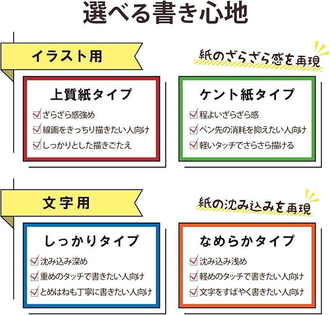 特殊表面形状デザインにより、ケント紙に鉛筆で描いたときの触感を実現します。