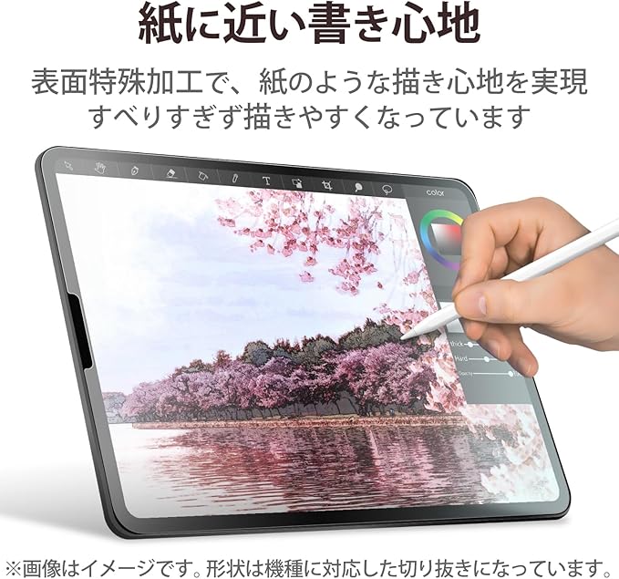 iPad Pro 12.9インチ (第6世代)(2022年モデル)、iPad Pro 12.9インチ (第5世代)(2021年モデル)、iPad Pro 12.9インチ(2020年春モデル)、iPad Pro 12.9インチ (2018年モデル)の液晶画面を傷や汚れから守る、指紋防止、反射防止、抗菌タイプの紙心地フィルムです。特殊表面形状デザインにより、ケント紙に鉛筆で描いたような描き心地を実現します。