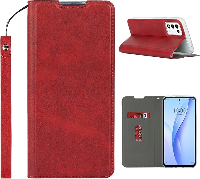 Pelanty ZTE Libero 5G III ケース ZTE Libero 5G III 手帳型ケース Libero5G iii 携帯カバー PUレザー スマホケース カード収納 スタンド機能 衝撃吸収 ストラップ付き マグネット式 ZTE リベロ5G 第3世代 ケース 全面保護カバー 軽量薄型 耐衝撃 レッド