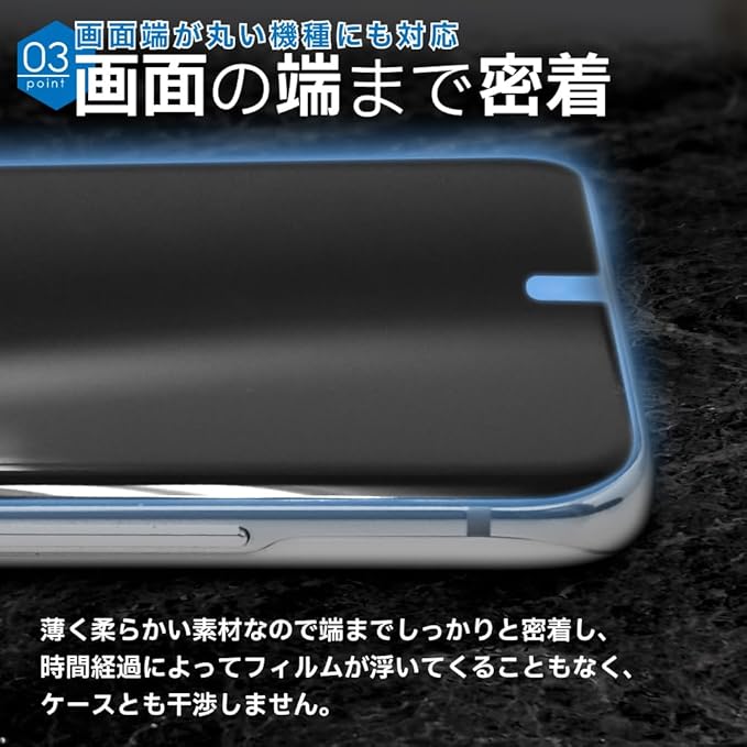 【衝撃吸収,指紋軽減】端末の液晶側面部分までしっかり保護し大切なスマートフォンの画面を守ります。指紋や汚れなど付きにくく拭けばすぐに綺麗になり、指通りもスムーズで清潔に使用できます。