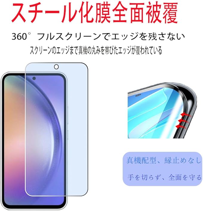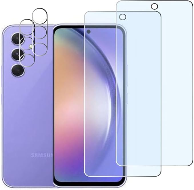 【2+2枚セット】FOR Galaxy A54 5G SC-53D / SCG21 ブルーライトカット 指紋認証対応 FOR Galaxy A54 5G SC-53D / SCG21 ガラスフィルム (2枚入り) + レンズフィルム (2枚入り)日本旭硝子素材採用眼精疲労軽減保護硬度9 H飛散防止指紋自動吸着気泡強化ガラスフィルム