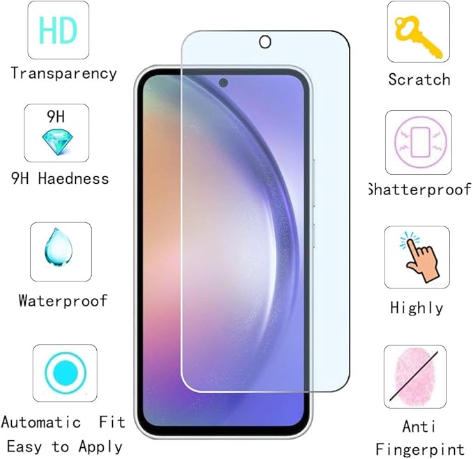 【2+2枚セット】FOR Galaxy A54 5G SC-53D / SCG21 ブルーライトカット 指紋認証対応 FOR Galaxy A54 5G SC-53D / SCG21 ガラスフィルム (2枚入り) + レンズフィルム (2枚入り)日本旭硝子素材採用眼精疲