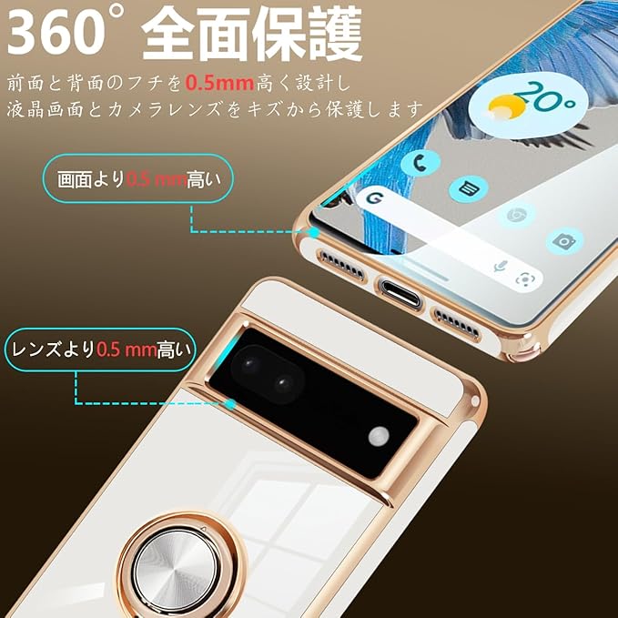 【高品質のTPU素材】Google Pixel7A ケース リング スマートフォン専用保護カバー 。高弾性TPU素材を採用、日常生活での消耗に耐えしっかり保護できるので、四角を強化することで、落下や衝撃による損傷を軽減します。 画面とカメラを保護するために上げられたベゼル。落下の衝撃から重要なスマホを守ってくれます。安定することで、スマホの操作性も優秀です。