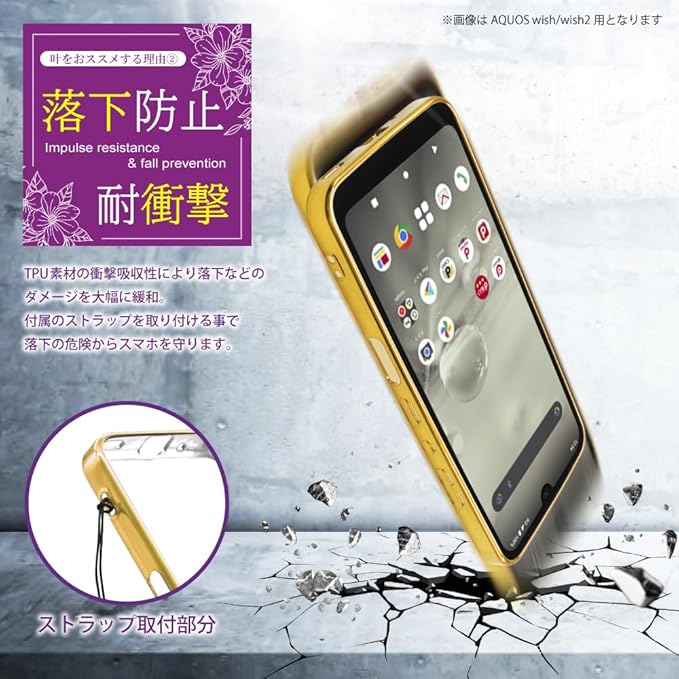 叶kanae カナエ AQUOS wish3 クリアケース SH-53D A302SH ケース カバー サイドメッキ加工 クリア ケース ゴールド クリア 1個入り
