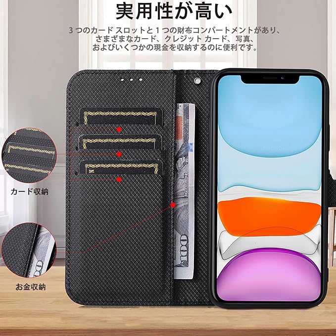【Miimall】AQUOS R8 pro ケース 手帳型 シャープ sh51d ケース アクオス R8 pro SH-51D カバー 財布型 横置き機能 ビジネス 耐衝撃 シンプルなデザイン シャープ アクオス R8 Pro ケース 磁気吸着 (ブラック)