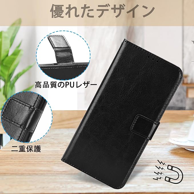 【Miimall】AQUOS R8 pro PUレザー ケース 手帳型ケース アクオス R8 pro SH-51D カバー カード収納 サイドマグネット スタンド機能付き 財布型 レザー シャープ sh51d ケース アクオス R8 pro SH-51D 6.6インチ(ブラック)