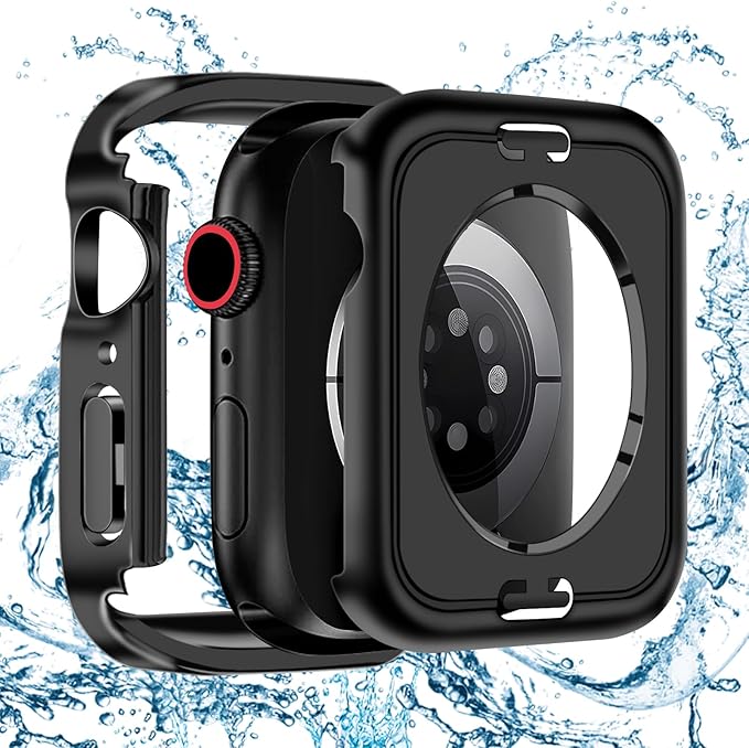 BELIYO 対応 Apple Watch ケース Series 9/8/7 アップルウォッチ カバー 防水ケース ガラスフィルム 一体型 2 in 1 前後の保護 3D直角エッジデザイン Apple Watch カバー PC素材 軽量 日本旭硝子材 二重構造 アップルウォッチ ケース 全面保護 高耐久 高透過率 装着簡単(45mm,ブラック)