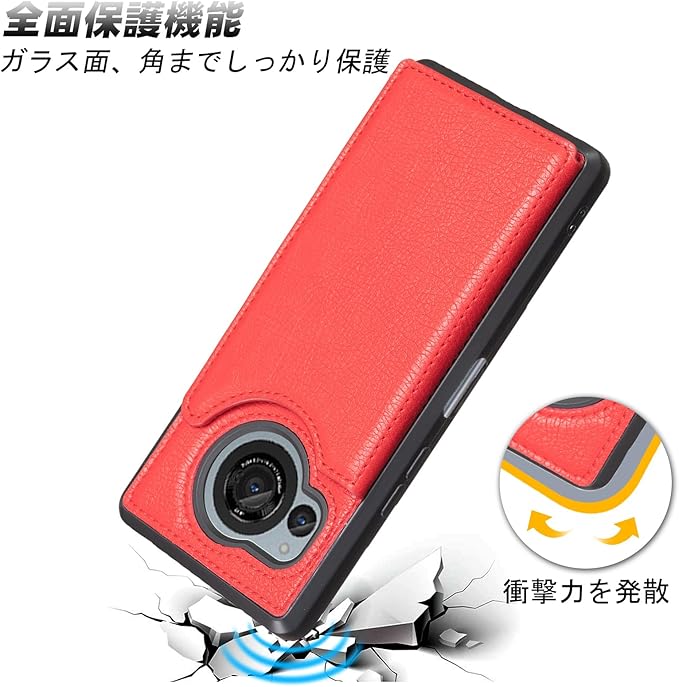 【 Antimam 】AQUOS wish3/SH-53D/A302SH 用 ケース 手帳型 財布型 新型 全面保護 耐衝撃 擦り傷防止 軽量 落下保護 手帳型 ケース(レッド)シャープ アクオス ウィッシュ3 高級 PU革 背面 IC カード 収