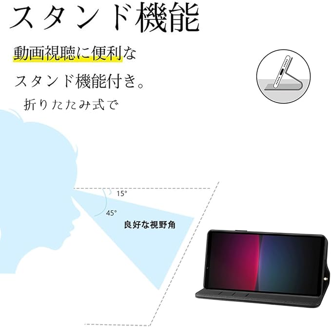 【カードポケット付き】:財布型ケースとして、名刺やお札などを入れるカードポケットがつき、ちょっとしたお出かけにもスマホケース一つでOK日常生活に便利です。ただし、カードを入れ過ぎると、閉まらない場合が