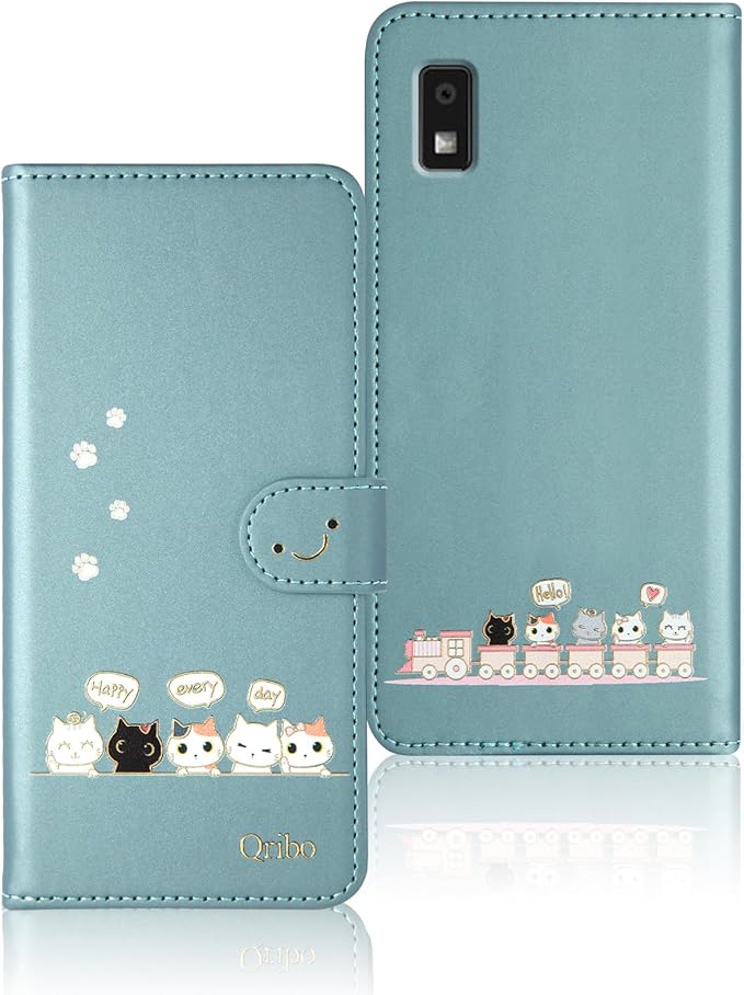 Qribo Aquos wish3 ケース 手帳型 アクオス wish3 ケース 手帳型 アクオス wish3 カバー Aquos wish3 A302SH ケース シンプルなのに可愛いデザイン エンボス加工猫柄 うれしい気持ち 5.7インチ対応 アクオ