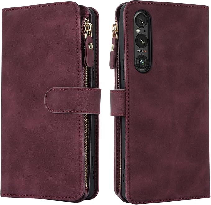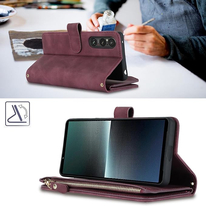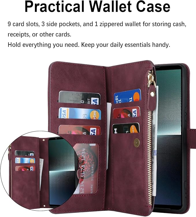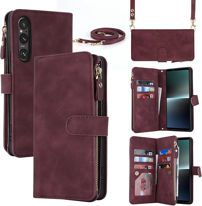 Pelanty for Xperia 1 V 縄掛けケース手帳型 XQ-DQ44 SO-51D SOG10 携帯カバー 肩掛け斜めがけ ショルダー 合成皮革+TPU マグネット Sony Xperia 1 V 財布型カバー ICカード お札入れ小銭入れ大容量 収納ポケット スタンド機能 ソニー エクスペリア1V 1 5代 ストラップ付き 落下防止 耐衝撃 全面保護(肩縄付き-ワインレッド)