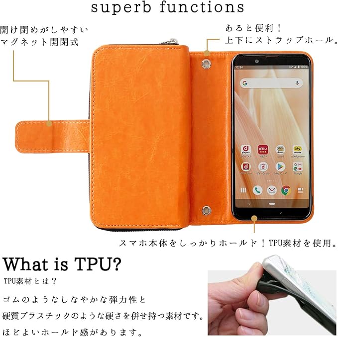 スタンド式充電、ワイヤレス充電には非対応の為、スタンド式充電、ワイヤレス充電で充電される場合は本ケースを外してご利用ください。内側は黒色のTPU素材のケースにより、本体を固定し、保護します。