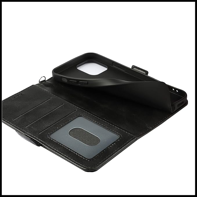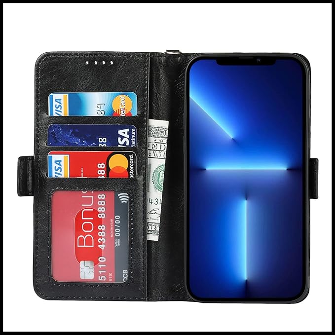 iPhone 13 Pro Max ケース アイフォン 13 Pro Max ケース 手帳型 スマホケース [RFIDブロッキング] FROLAN レザー 携帯カバー マグネット式 カード収納 軽量 汗や指紋防止 耐衝撃 スタンド機能 着脱しやすい 6.7インチ対応 (ブラック)