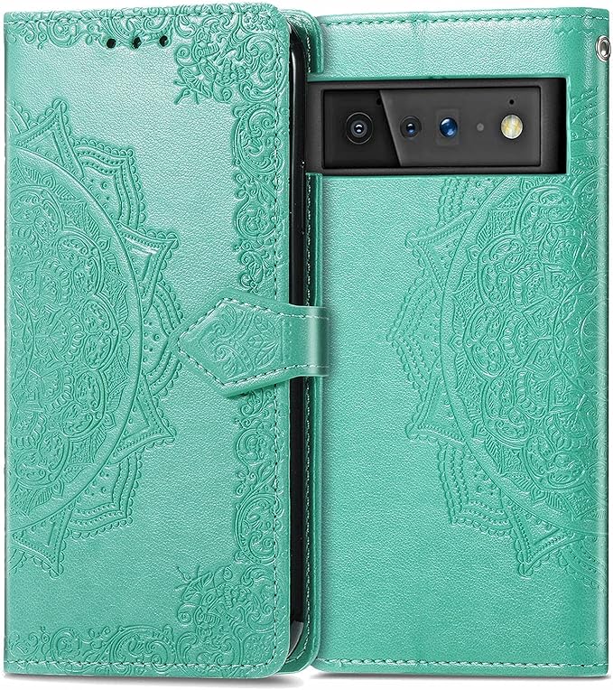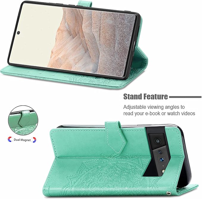 RuiMi google pixel 6 pro 対応 手帳型 純色 【全6色】 花柄 ケース 横開き google pixel 6 pro ケース カバー スタンド機能 財布型 耐衝撃 軽量 防塵 シンプル おしゃれ 良質PU レザーケース カード収納 人気女性 カバー 【ストラップ付き】 おしゃれ かわいい google pixel 6 pro 保護カバー シンプル スマホ スマートフォン 携帯カバー (google pixel 6 pro, グリーン)