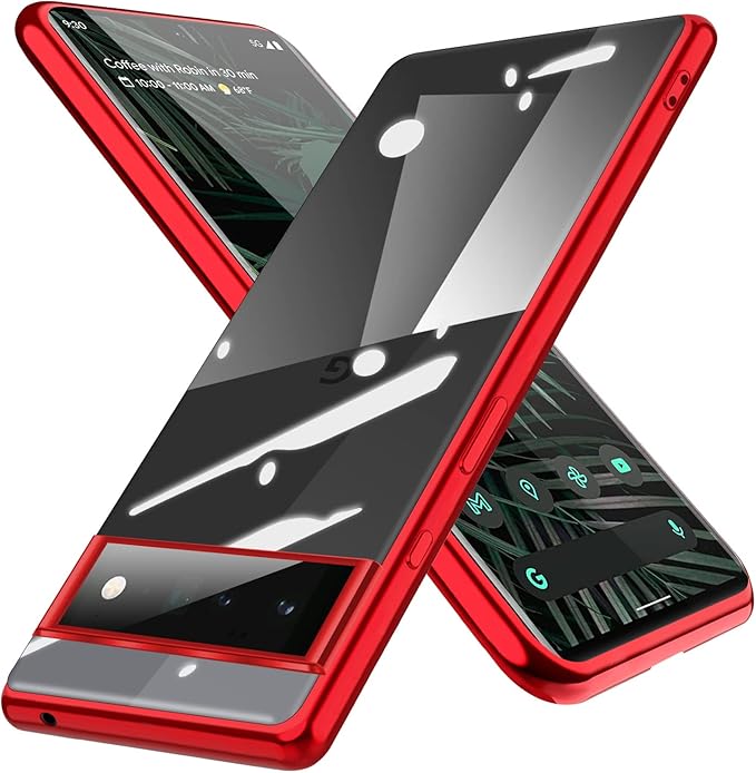 Pixel6 Pro ケース クリア スマホケース ピクセル 6Pro 透明 ソフト tpu 背面クリア 赤 ストラップホール付き 軽量 耐衝撃 カバー レッド