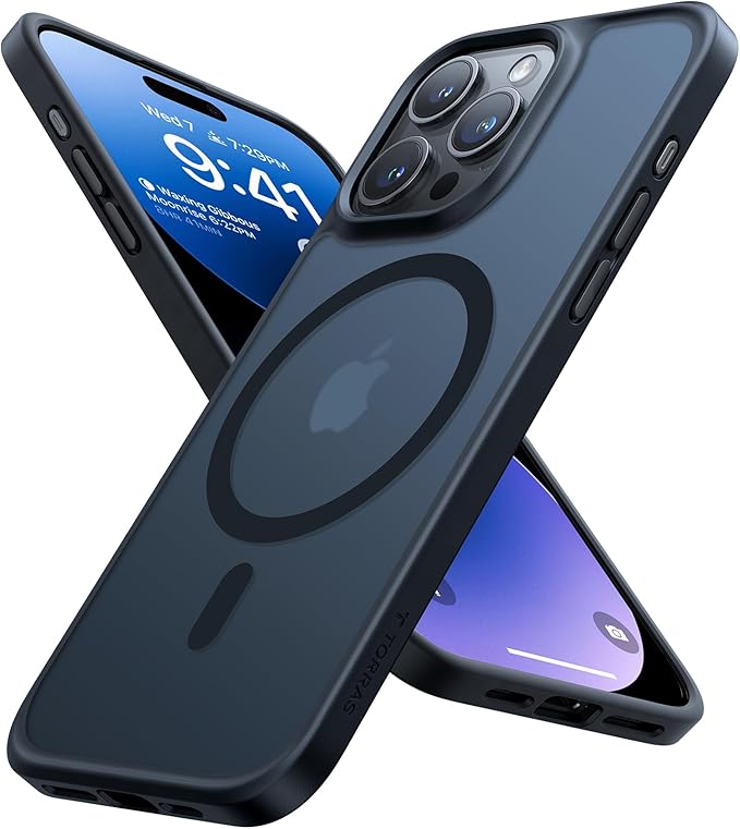 【米軍堅牢な耐落下性・高?力マグネット搭載】TORRAS iPhone 15 pro 用 ケース 半透明 マグネット搭載 耐衝撃 マット感 黄ばみなし ストラップホール付き ワイアレス充電対応 Guardian-Mag ブラック