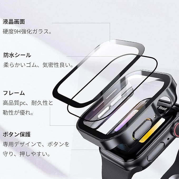 ☆高品質素材: Apple Watch ケースの画面部分が硬度9Hで強靭な日本旭硝子素材を採用して耐傷、耐衝撃のは強い。スマートウォッチ本来の美しさをそのままに保つことが可能です。