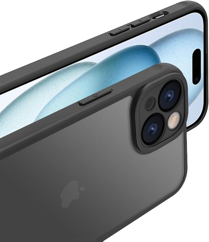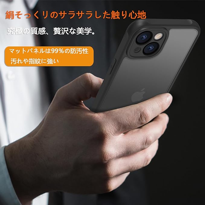 iPhone 15 ケース iphone ケース スマホカバー 耐衝撃 指紋防止 滑り止め マット半透明 黄ばみなし レンズ保護 米軍MIL規格アイフォン15 用カバー インチ PinLiSheng (ブラック, iPhone 15)