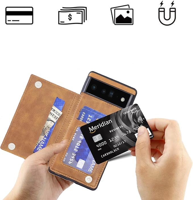 【Viesa】背面カード 手帳型ケース Google Pixel 7A docomo au Softbank 対応 Google スマホ バックカバー ケース 手帳型 (ブラウン) 手作り 財布型 マグネット 薄 軽量 ポケット収納付き 背面カバー 手帳 横置きスタンド機能 背面型ケース グーグル ピクセル7a ドコモpixel7a ソフトバンクpixel7a KHAKI