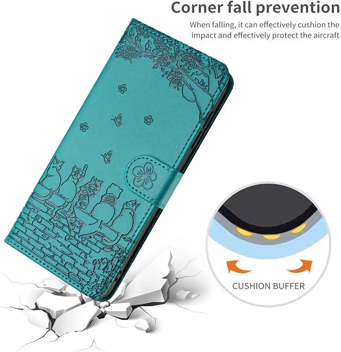 TEDTIKJT iPhone 15 Plusケース手帳型 レザー iPhone15 plusカバー 内蔵マグネット軽量 耐衝撃 iphone 15Plusケース 手帳型 スマホケース 桜の下の猫 アイホン15 Plusケース iPhone 15 plus カード収納 スタンド機能 収納 財布型 人気 高級PUレザー 横置き機能き薄型 マグネット式 ( iPhone 15 Plus 6.7インチ対応,緑)