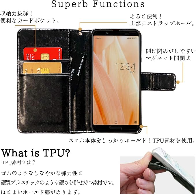 AQUOS wish3 SH-53D A302SH SH-M25 用 手帳型 ケース カバー SH-53Dケース SH-53Dカバー SH53D A302SHケース A302SHカバー SH-M25ケース SH-M25カバー アクオス 手帳 手帳型ケース 手帳型カバー こだわり手帳 ブラック