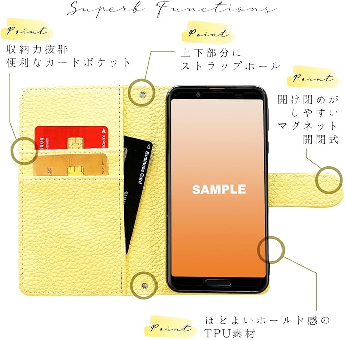 AQUOS wish3 SH-53D A302SH SH-M25 ケース 手帳型 wish 3 sh53d shm25 手帳型ケース カバー アクオス ウィッシュ 手帳 スマホケース スマホカバー ハンドあり上品 【NB】 パステルイエロー